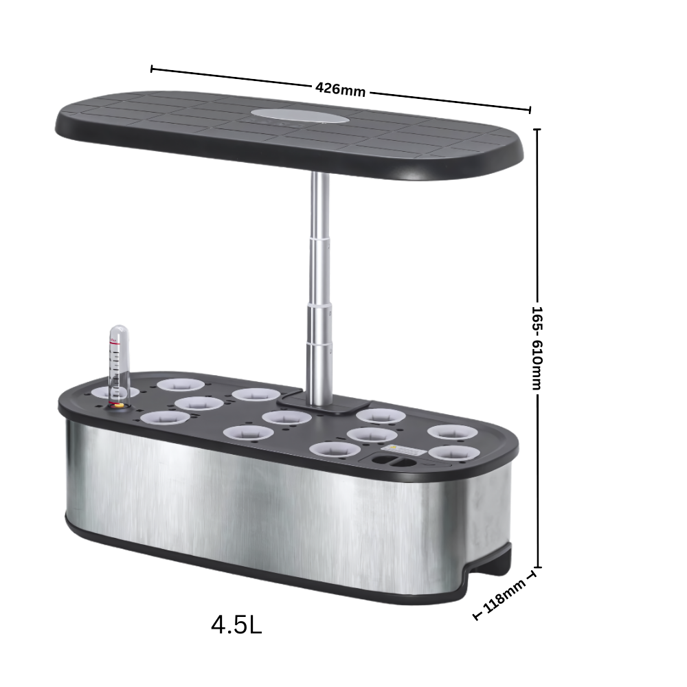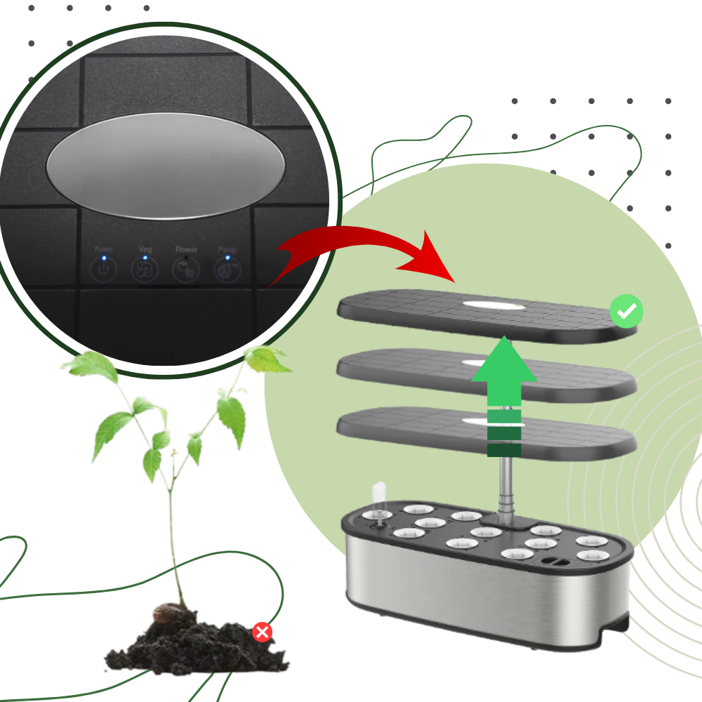 Denna hydroponiska trädgård är utformad för att maximera din odlingspotential inom ett kompakt, effektivt utrymme. Föreställ dig att du kan odla upp till 12 olika växter samtidigt, allt i bekvämligheten av ditt hem. Med det här mångsidiga systemet kan du odla en mängd olika örter, grönsaker och blommor och se till att varje planta får optimal mängd utrymme, ljus och näringsämnen för en sund utveckling. Oavsett om du är en kulinarisk entusiast som vill ha färska örter till hands eller en blomälskare som vill njuta av blommor året runt, erbjuder detta system den perfekta lösningen. Genom att rymma flera växter samtidigt förbättrar det inte bara din trädgårdsupplevelse inomhus utan sparar också tid och ansträngning, vilket gör det till ett oumbärligt verktyg för alla trädgårdsmästare.