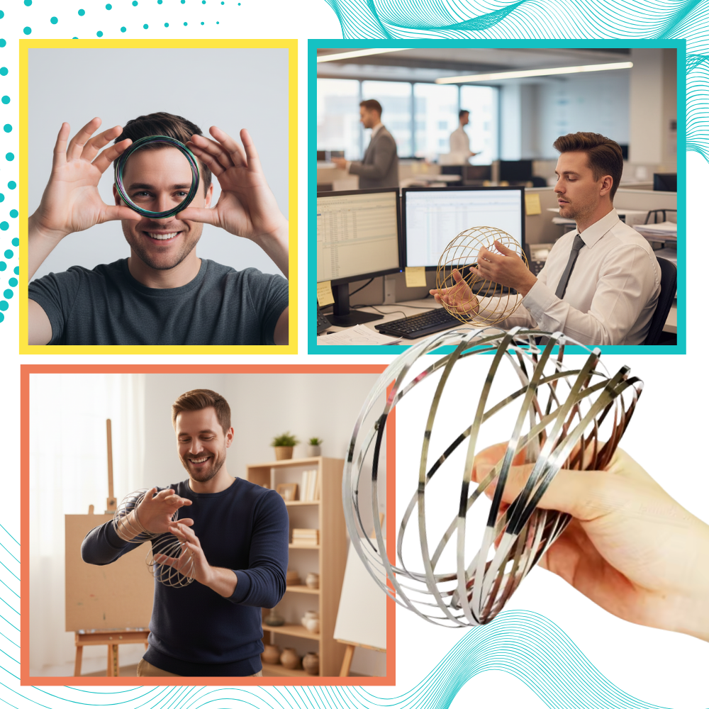 Till skillnad från vanliga leksaker har denna flödesring en unik 3D-kinetisk design som väcks till liv så fort den vidrör din hud. Den är tillverkad av en enda tråd av högkvalitativt rostfritt stål och expanderar till en sfärisk, fjäderliknande struktur som dansar och glider smidigt längs dina armar i en kontinuerlig loop. Denna rörelsebaserade design fascinerar användare i alla åldrar och blandar fysik, geometri och lek på ett sätt som är visuellt imponerande och fysiskt interaktivt – vilket gör den till en unik upplevelse.