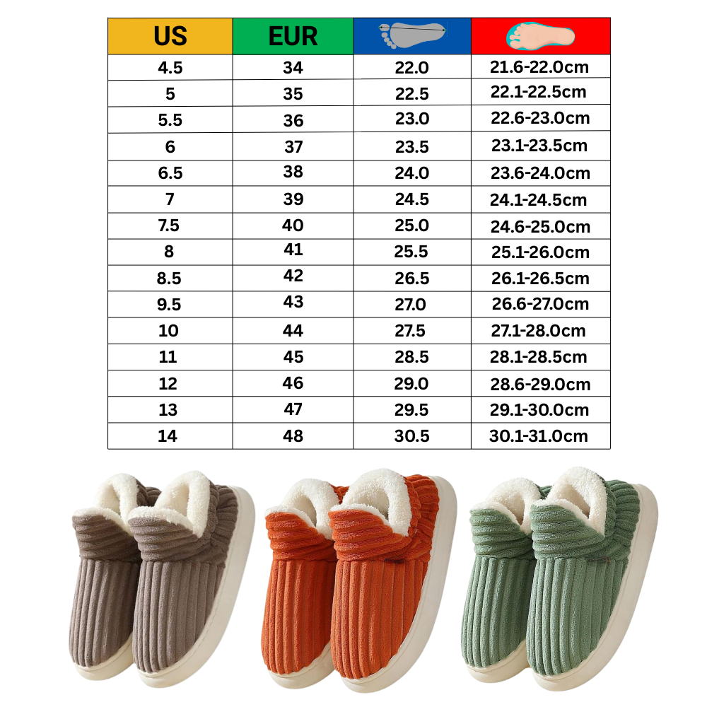 Från det ögonblick du tar på dig dem ger dessa Fluffiga plyschtofflor en mjukhet som känns som att gå på luft. De är fodrade med plush fleece och klädda i ribbad bomull på utsidan och omsluter dina fötter mjukt för att ge omedelbar värme och komfort. Texturen är inte bara mysig utan också mjuk mot bar hud – perfekt för känsliga fötter som längtar efter avkoppling efter en lång dag. Mjukheten gör dem perfekta för att koppla av, slappna av eller helt enkelt ge dina fötter den vila de förtjänar.