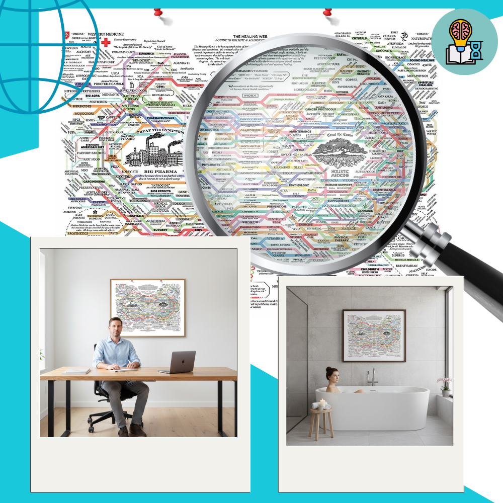 Vår Helande Nätverket Komplett Naturläkemedelsaffisch är en genomtänkt översikt över naturinspirerade hälsometoder. Den är utformad för dem som är intresserade av traditionella och holistiska metoder och illustrerar hur olika växter och naturliga element historiskt har använts för att främja välbefinnandet. Denna tabell är idealisk för elever, lärare eller alla som är nyfikna på kompletterande metoder och erbjuder en visuell display av tidlösa kunskaper – allt i en elegant design.
