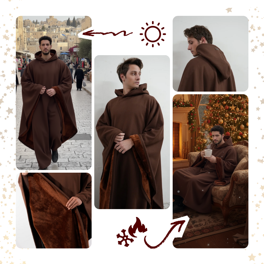 Denna ponchohuvtröja är tillverkad av ultramjukt fuskfleece och omsluter kroppen med ett tyg som känns mjukt och lugnande från det ögonblick du tar på dig den. Den mjuka texturen glider smidigt mot huden, minskar irritation och ökar den allmänna komforten, särskilt vid långvarig användning. Dess mjukhet ger en känsla av lätthet som gör avkopplingen mer njutbar, oavsett om du kopplar av efter en hektisk dag eller klär dig varmt för extra värme inomhus. Det är den typen av tyg som gör att du ser fram emot att ta på dig den – varje gång.