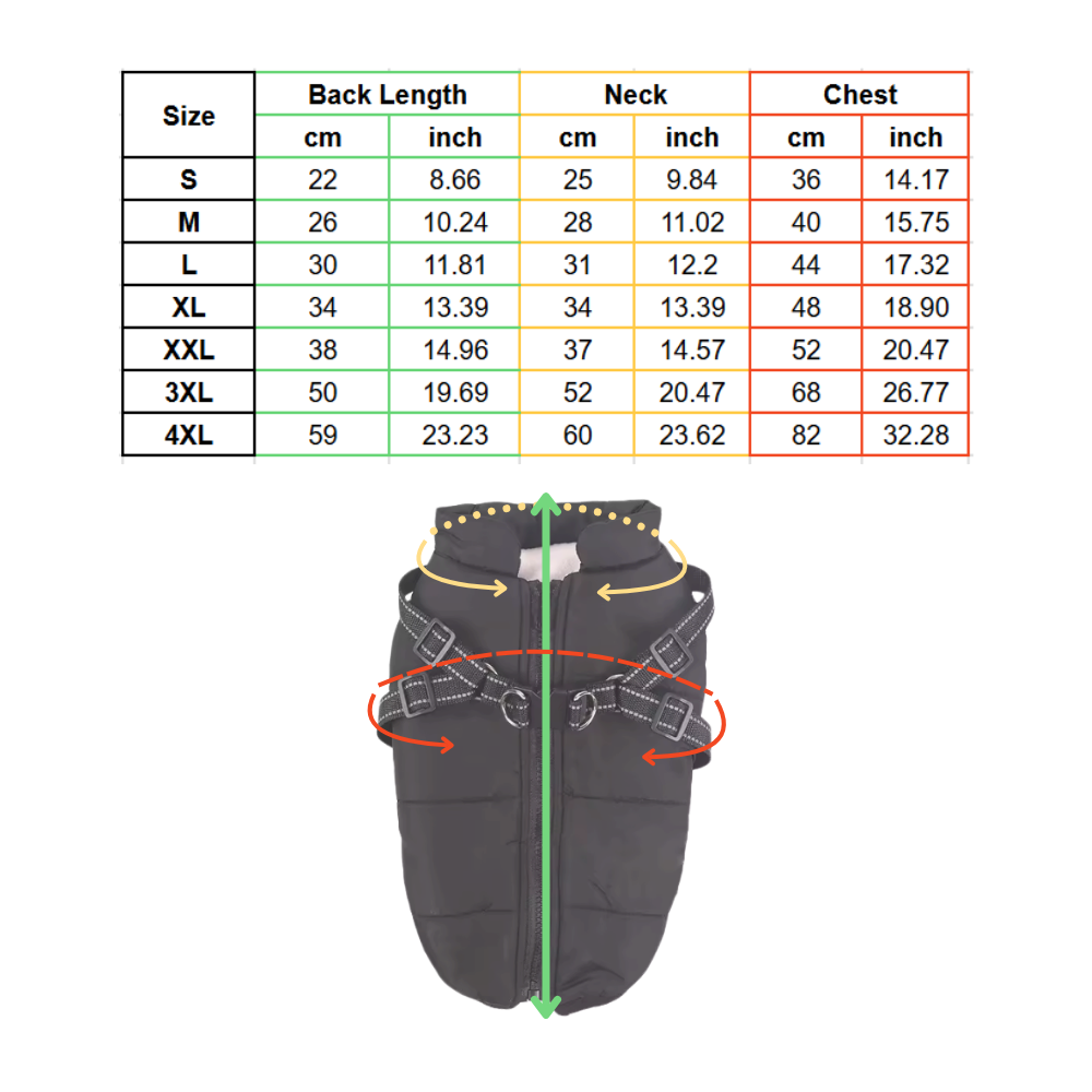 Varje hund förtjänar en jacka som passar perfekt. Med justerbara remmar runt magen och halsen garanterar vinterjackan för hundar en tät men bekväm passform för alla kroppstyper. Oavsett om din hund är smal, kraftig eller något däremellan, ger den flexibla designen en skräddarsydd känsla som minskar skav och eliminerar obekväma förskjutningar. Den är utformad för att röra sig med din hund – inte mot den – så att den kan njuta av obegränsad lek och komfort i alla miljöer.