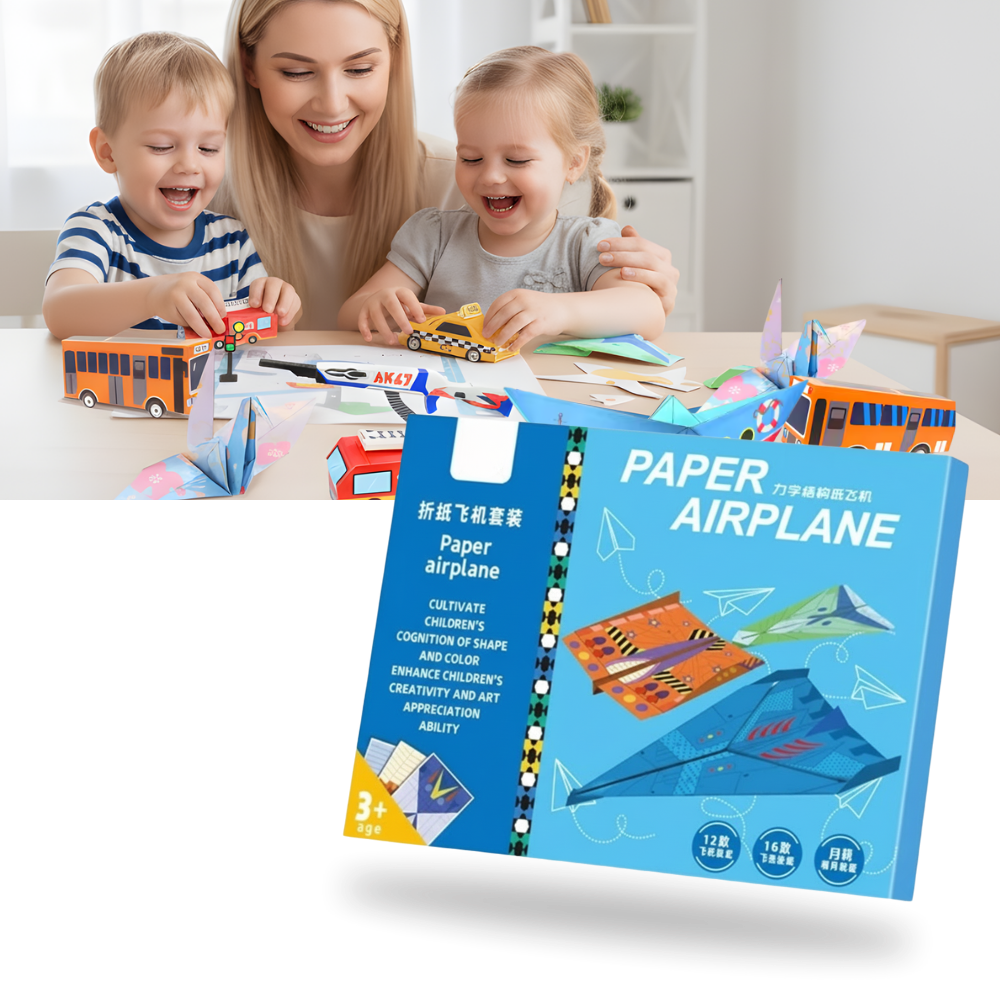 Till skillnad från platta origami eller enkla pappersflygplan lär denna Origamibok med flera teman barn hur man bygger realistiska 3D-modeller som efterliknar strukturen och balansen hos riktiga föremål. Varje design innehåller avsiktliga vikningar och stabiliserande komponenter som ger flygplanen lyftkraft, form och funktionalitet. Denna extra dimension möjliggör bättre flygegenskaper och ger barnen en känsla av att skapa något avancerat och imponerande. Resultatet? Pappersflygplan som inte bara flyger längre utan också ser mer dynamiska ut och känns mer dynamiska i handen.