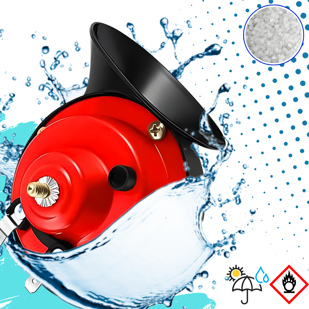 Superhögljutt lastbilshorn är innesluten i icke-oxiderande ABS-plast, vilket ger utmärkt motståndskraft mot fukt, rost, UV-strålar och fysiskt slitage. Detta hållbara material förlänger hornets livslängd i olika klimat – oavsett om det är monterat på en regnexponerad motorcykel, installerat på en arbetsbil eller används på en saltvattenexponerad båt. Den väderbeständiga designen innebär att du kan lita på jämn prestanda, oavsett årstid eller terräng.